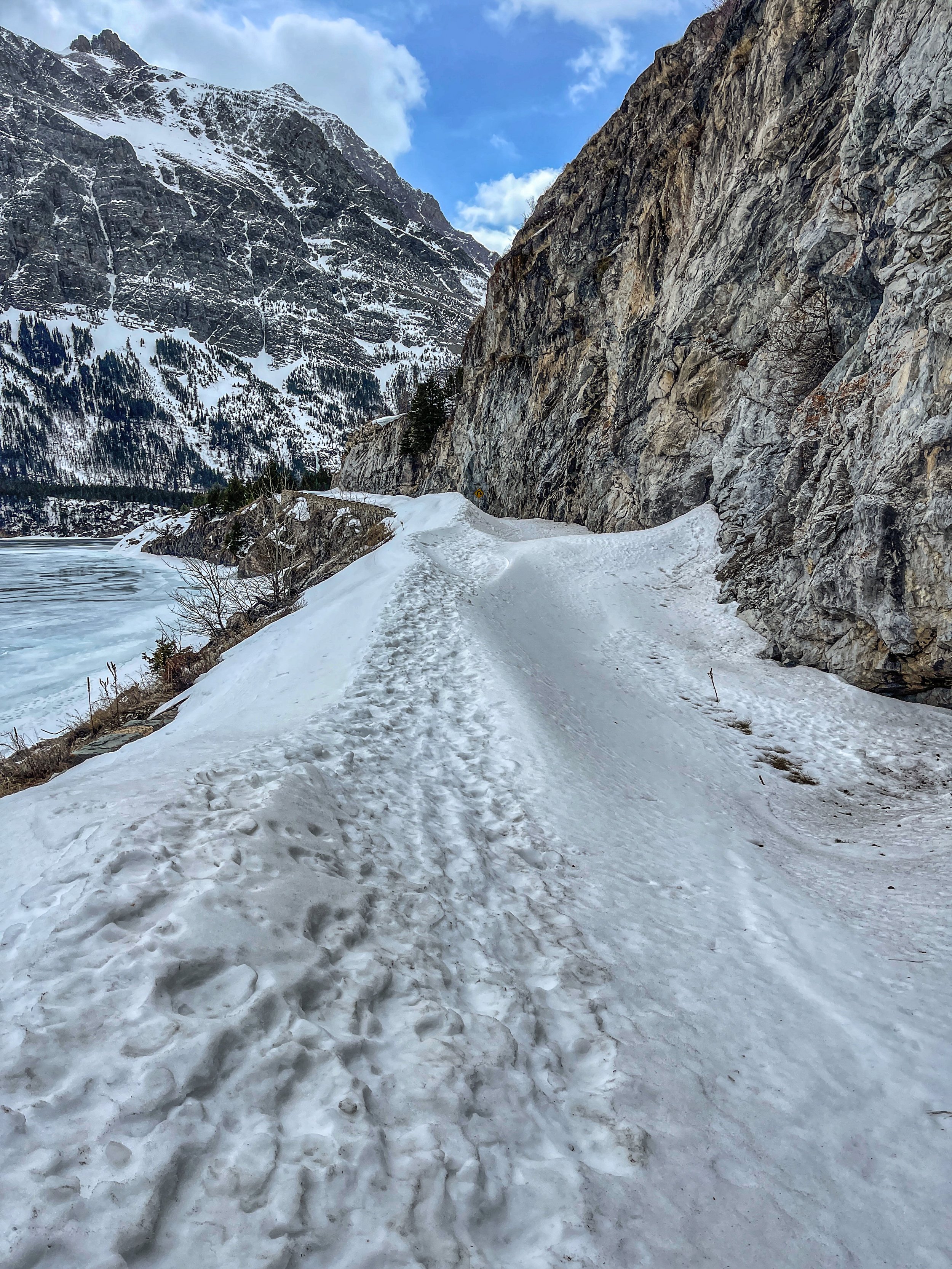 Going to the Sun Road is probably the highlight of Glacier National Park, in regards to vehicular modes of transportation. Beginning at St. Mary and ending in West Glacier, it traverses 50 miles of mountainous highway, as it eventually crosses the continental divide. From what I've been told, it's a sight like none other. Last year, Going to the Sun road in Glacier National Park didn’t open till July, and by the looks of it, it’s on a track for a similar opening date for 2023. Although the gate was closed on the St. Mary side, you can still venture the road by snowshoe, so I did what any other normal person would do when faced with four foot snow drifts, I made my way in. About a 1/2 mile into my trek, I found a rock to sit on which overlooked the interior of the park. The wind picked up as the trees began to sway. Not another living soul around, although the thought of a bear approaching crossed my mind, more on that later. I closed my eyes and drifted away, to that special place of peace and solace.